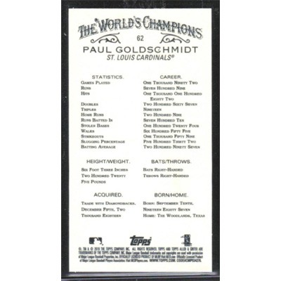 This is a 2019 Topps Allen & Ginter Mini Paul Goldschmidt baseball card. The card is #62 and pictures show condition.