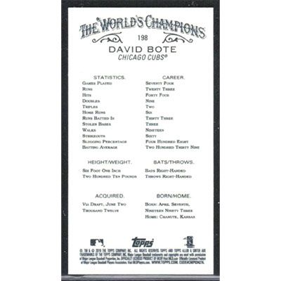 This is a 2019 Topps Allen & Ginter Mini Gold Border David Bote baseball card. The card is #198 and pictures show condition.