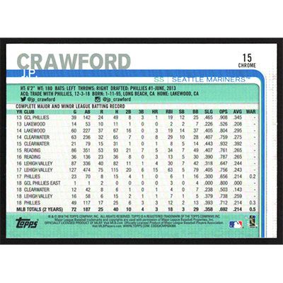 This is a 2019 Topps Chrome J.P. Crawford baseball card. The card is #15 and pictures show condition.