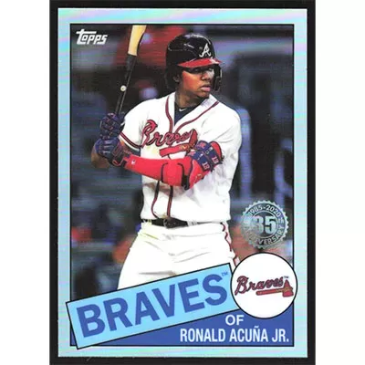 This is a 2019 Topps Chrome '85 Ronald Acuña Jr. baseball card. The card is #85TC-25 and pictures show condition.