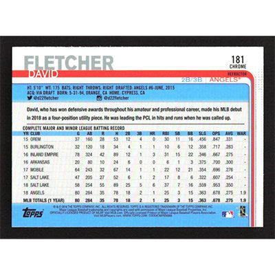 This is a 2019 Topps Chrome Pink Refractors David Fletcher baseball card. The card is #181 and pictures show condition. Team(s): Los Angeles Angels Rookie Card (RC)