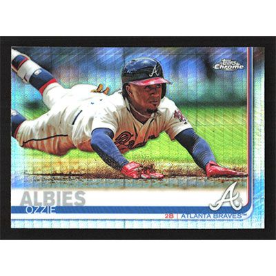 This is a 2019 Topps Chrome Prism Refractors Ozzie Albies baseball card. The card is #57 and pictures show condition.