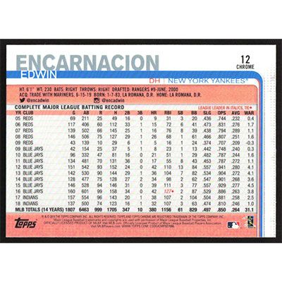 This is a 2019 Topps Chrome Update Edwin Encarnacion baseball card. The card is #12 and pictures show condition.