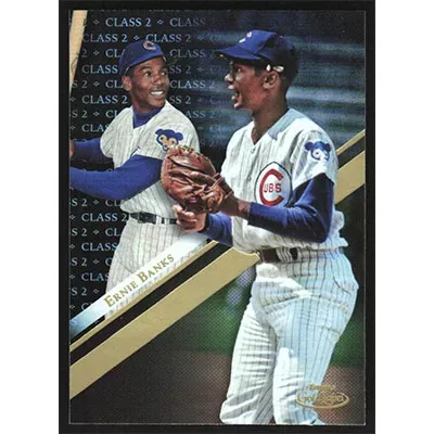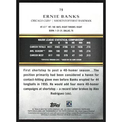 This is a 2019 Topps Gold Label Class 2 Black Ernie Banks baseball card. The card is #79 and pictures show condition.