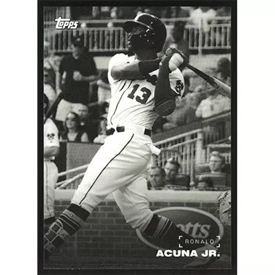 This is a 2019 Topps On-Demand Black and White Ronald Acuña Jr. baseball card. The card is #29 and pictures show condition.