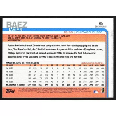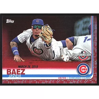 This is a 2019 Topps Opening Day Red Foil Javier Baez baseball card. The card is #95 and pictures show condition.
