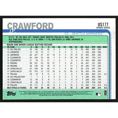 This is a 2019 Topps Update J.P. Crawford baseball card. The card is #US177 and pictures show condition.