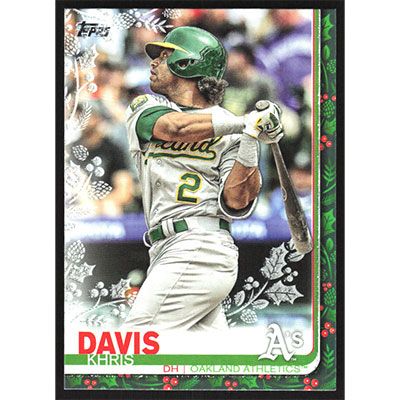 This is a 2019 Topps Wal-Mart Holiday Metallic Khris Davis baseball card. The card is #HW128 and pictures show condition.