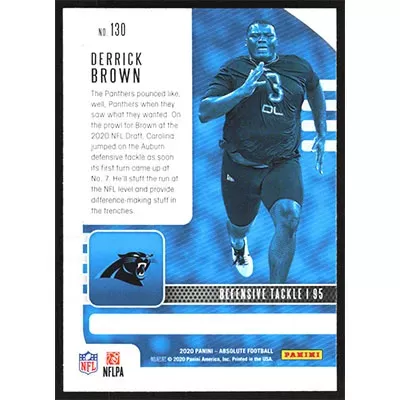 This is a 2020 Absolute Derrick Brown football card. The card is #130 and pictures show condition.