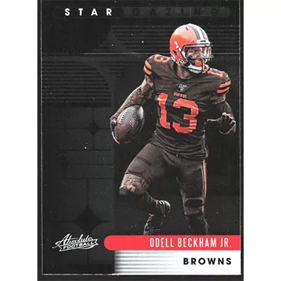 This is a 2020 Absolute Star Gazing Odell Beckham Jr. football card. The card is #SG-OBJ and pictures show condition.