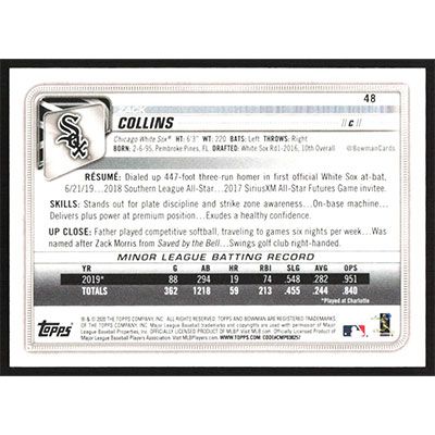 This is a 2020 Bowman Zack Collins baseball card. The card is #48 and pictures show condition.