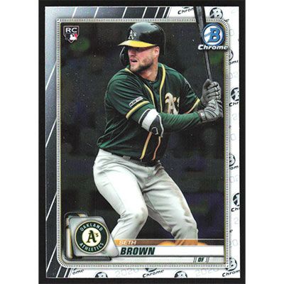 This is a 2020 Bowman Chrome Seth Brown baseball card. The card is #63 and pictures show condition.