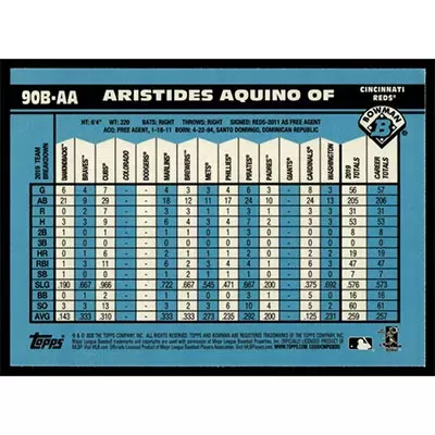 This is a 2020 Bowman Chrome '90 Aristides Aquino baseball card. The card is #90B-AA and pictures show condition. Team(s): Cincinnati Reds Rookie Card (RC)