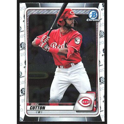This is a 2020 Bowman Chrome Draft Quin Cotton baseball card. The card is #BD-104 and pictures show condition.