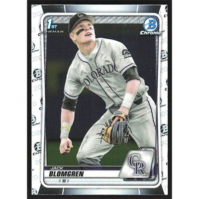 This is a 2020 Bowman Chrome Draft Jack Blomgren baseball card. The card is #BD-162 and pictures show condition.
