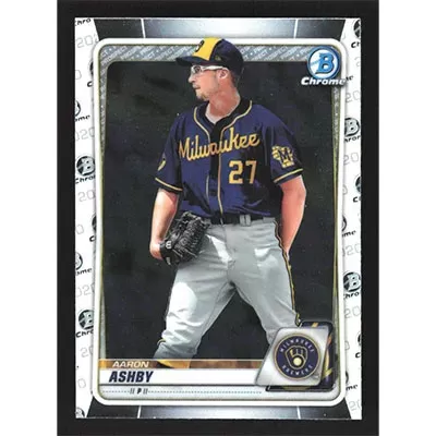 This is a 2020 Bowman Chrome Draft Aaron Ashby baseball card. The card is #BD-186 and pictures show condition.