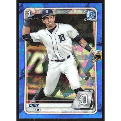 This is a 2020 Bowman Chrome Draft Sapphire Trei Cruz baseball card. The card is #BD-11 and pictures show condition.