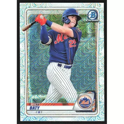 This is a 2020 Bowman Chrome Mega Box Prospects Refractors Brett Baty baseball card. The card is #BCP-247 and pictures show condition. Team(s): New York Mets