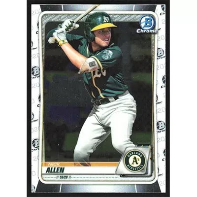 This is a 2020 Bowman Chrome Prospects Nick Allen baseball card. The card is #BCP-105 and pictures show condition.