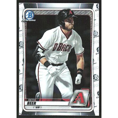 This is a 2020 Bowman Chrome Prospects Seth Beer baseball card. The card is #BCP-75 and pictures show condition.