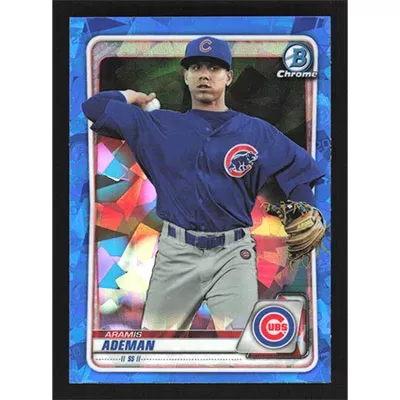 This is a 2020 Bowman Chrome Sapphire Prospects Aramis Ademan baseball card. The card is #BCP-110 and pictures show condition.