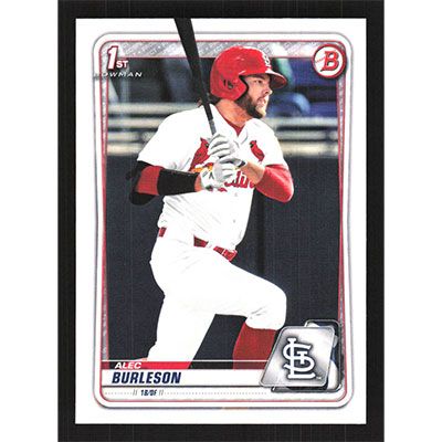This is a 2020 Bowman Draft Alec Burleson baseball card. The card is #BD-45 and pictures show condition.