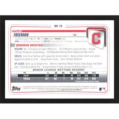 This is a 2020 Bowman Draft Tyler Freeman baseball card. The card is #BD-78 and pictures show condition.