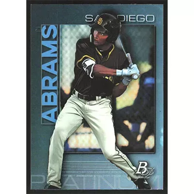 This is a 2020 Bowman Platinum Top Prospects CJ Abrams baseball card. The card is #TOP-10 and pictures show condition.