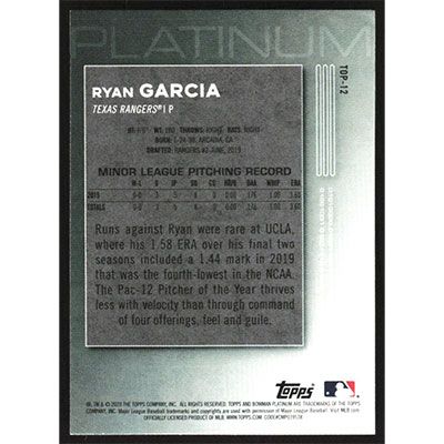 This is a 2020 Bowman Platinum Top Prospects Ryan Garcia baseball card. The card is #TOP-12 and pictures show condition.
