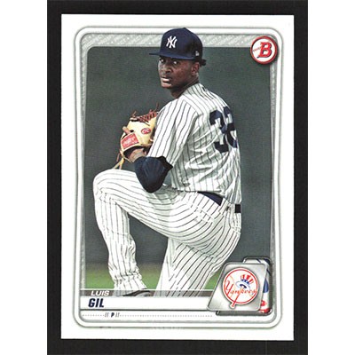 This is a 2020 Bowman Prospects Luis Gil baseball card. The card is #BP-132 and pictures show condition.