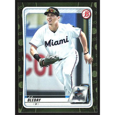 This is a 2020 Bowman Prospects Camo J.J. Bleday baseball card. The card is #BP-116 and pictures show condition.