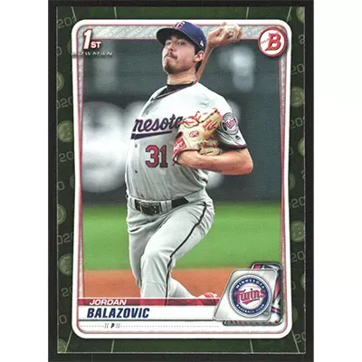 This is a 2020 Bowman Prospects Camo Jordan Balazovic baseball card. The card is #BP-123 and pictures show condition.