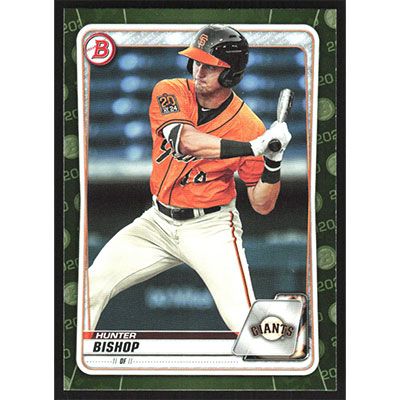 This is a 2020 Bowman Prospects Camo Hunter Bishop baseball card. The card is #BP-129 and pictures show condition.