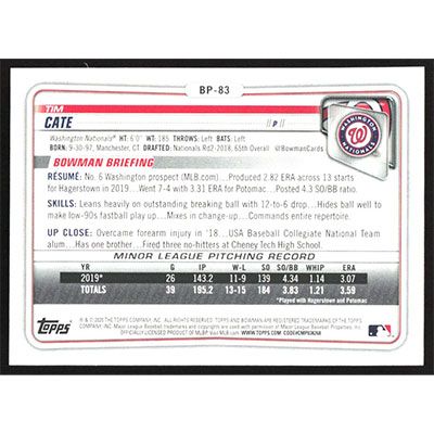This is a 2020 Bowman Prospects Camo Tim Cate baseball card. The card is #BP-83 and pictures show condition.