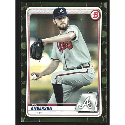 This is a 2020 Bowman Prospects Camo Ian Anderson baseball card. The card is #BP-97 and pictures show condition.
