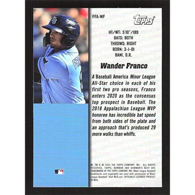 This is a 2020 Bowman's Best Franchise Favorites Wander Franco baseball card. The card is #FFA-WF and pictures show condition.