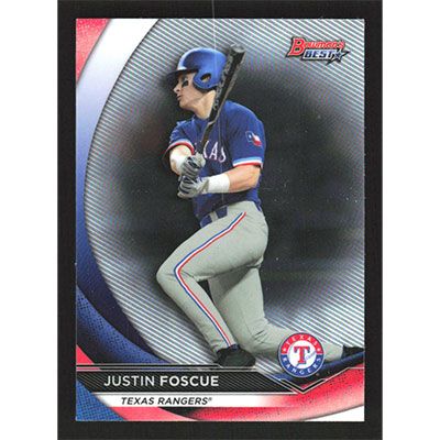 This is a 2020 Bowman's Best Top Prospects Justin Foscue baseball card. The card is #TP-6 and pictures show condition.