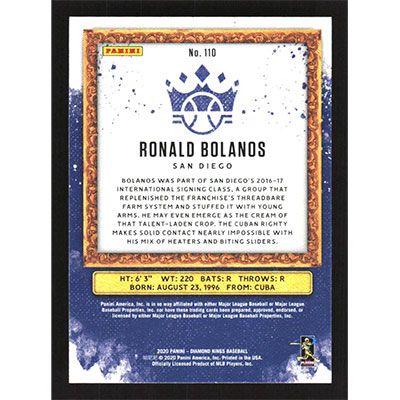 This is a 2020 Diamond Kings Ronald Bolanos SP baseball card. The card is #110 and pictures show condition. Team(s): San Diego Padres Rookie Card (RC)