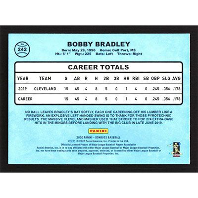 This is a 2020 Donruss Bobby Bradley Retro baseball card. The card is #242 and pictures show condition.