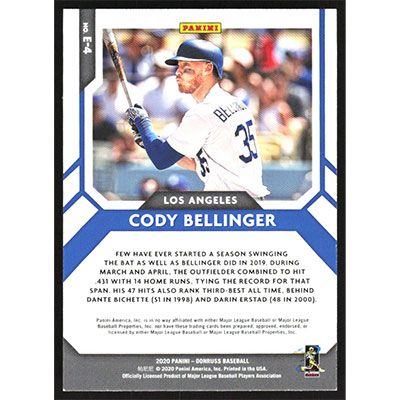 This is a 2020 Donruss Elite Series Vector Cody Bellinger baseball card. The card is #E-4 and pictures show condition.