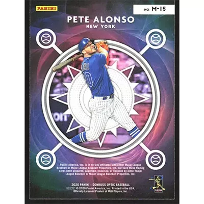 This is a 2020 Donruss Optic Mythical Pete Alonso baseball card. The card is #M-15 and pictures show condition.
