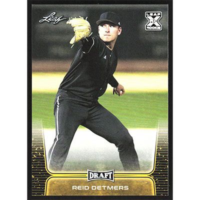 This is a 2020 Leaf Draft Gold Reid Detmers baseball card. The card is #33 and pictures show condition.