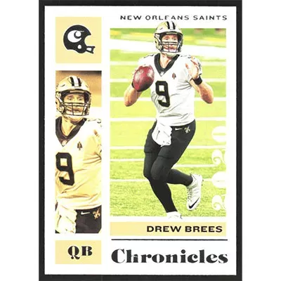 This is a 2020 Panini Chronicles Drew Brees football card. The card is #67 and pictures show condition.