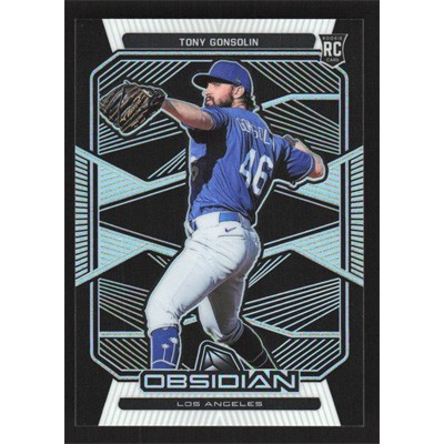 This is a 2020 Panini Chronicles Obsidian Tony Gonsolin baseball card. The card is #6 and pictures show condition. Team(s): Los Angeles Dodgers Rookie Card (RC)