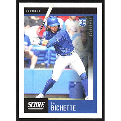 This is a 2020 Panini Chronicles Score Bo Bichette baseball card. The card is #2 and pictures show condition. Team(s): Toronto Blue Jays Rookie Card (RC)
