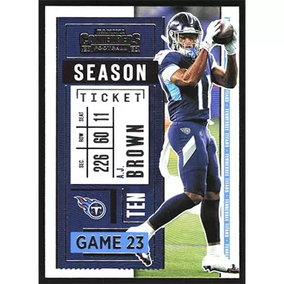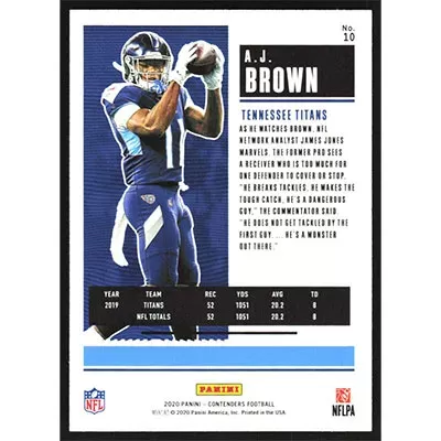 This is a 2020 Panini Contenders A.J. Brown football card. The card is #10 and pictures show condition.