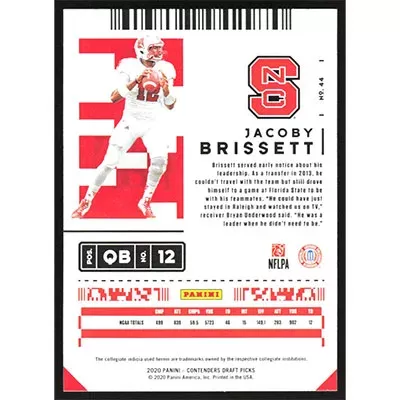 This is a 2020 Panini Contenders Draft Picks Jacoby Brissett football card. The card is #44 and pictures show condition.