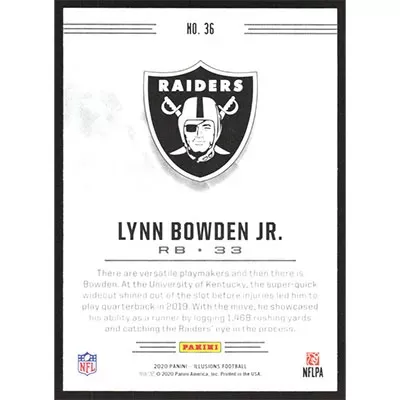 This is a 2020 Panini Illusions Lynn Bowden Jr. football card. The card is #36 and pictures show condition.