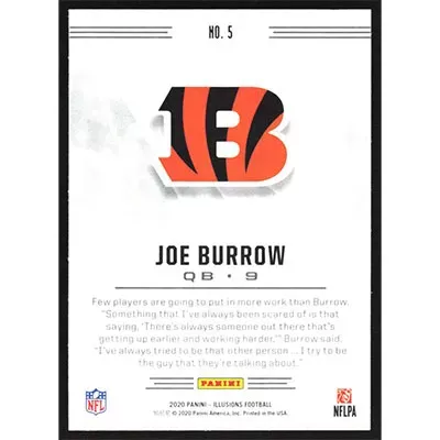 This is a 2020 Panini Illusions Joe Burrow football card. The card is #5 and pictures show condition.