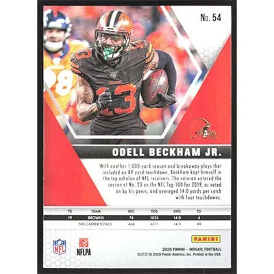 This is a 2020 Panini Mosaic Odell Beckham Jr. football card. The card is #54 and pictures show condition.